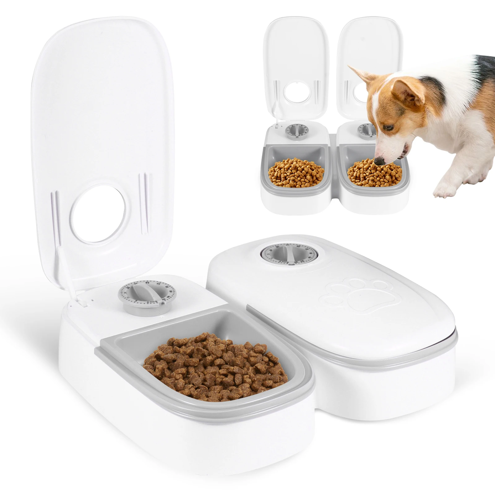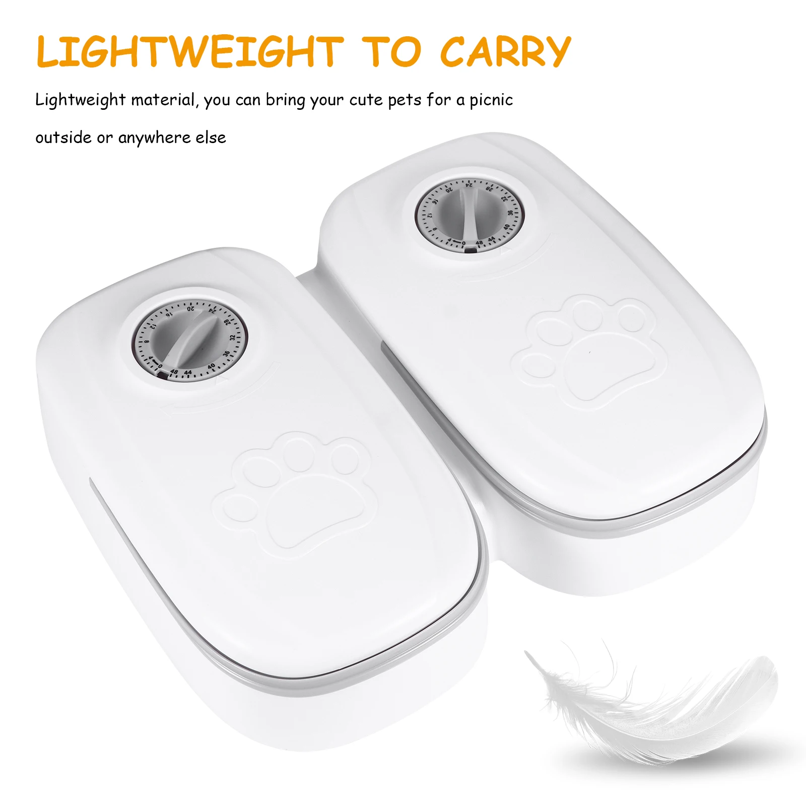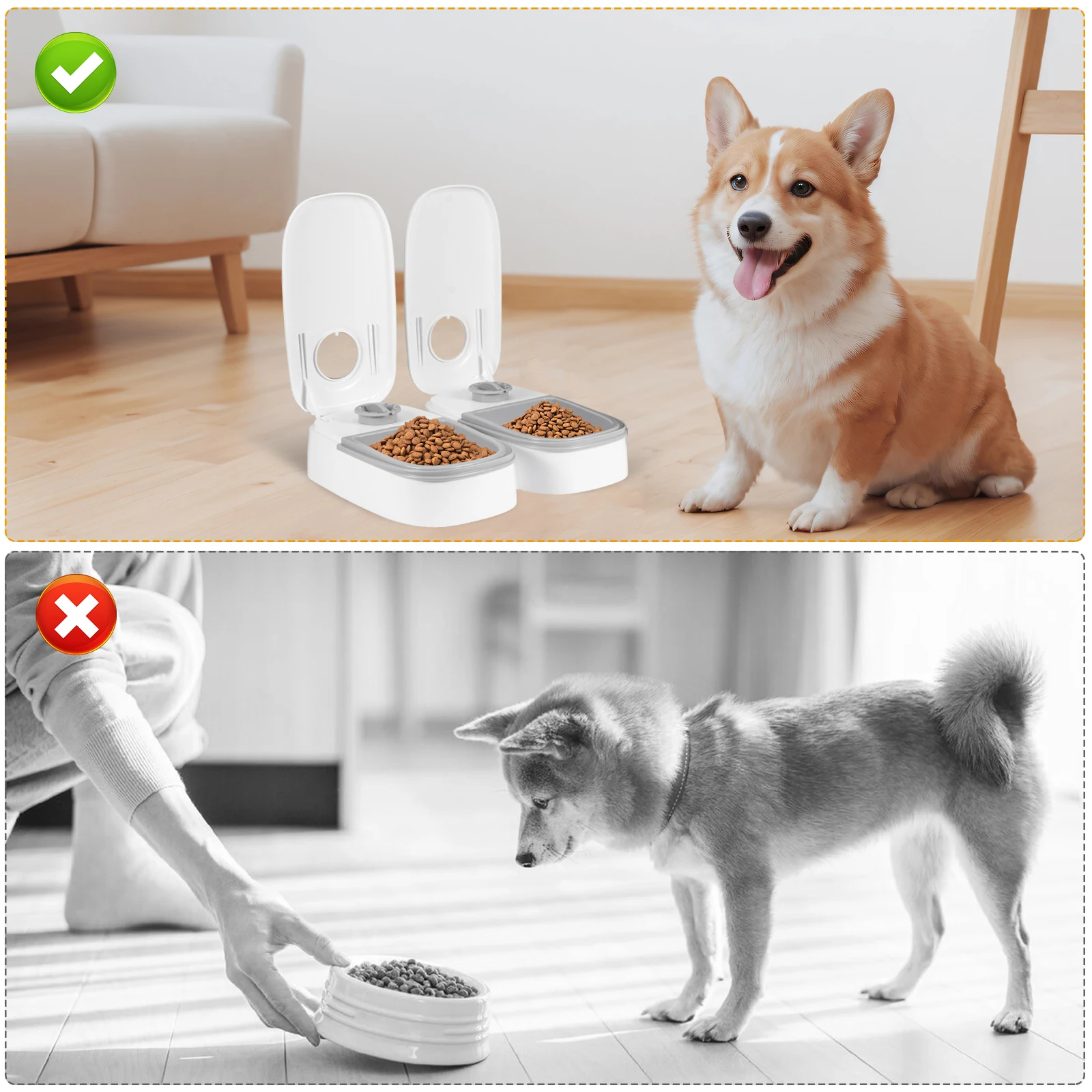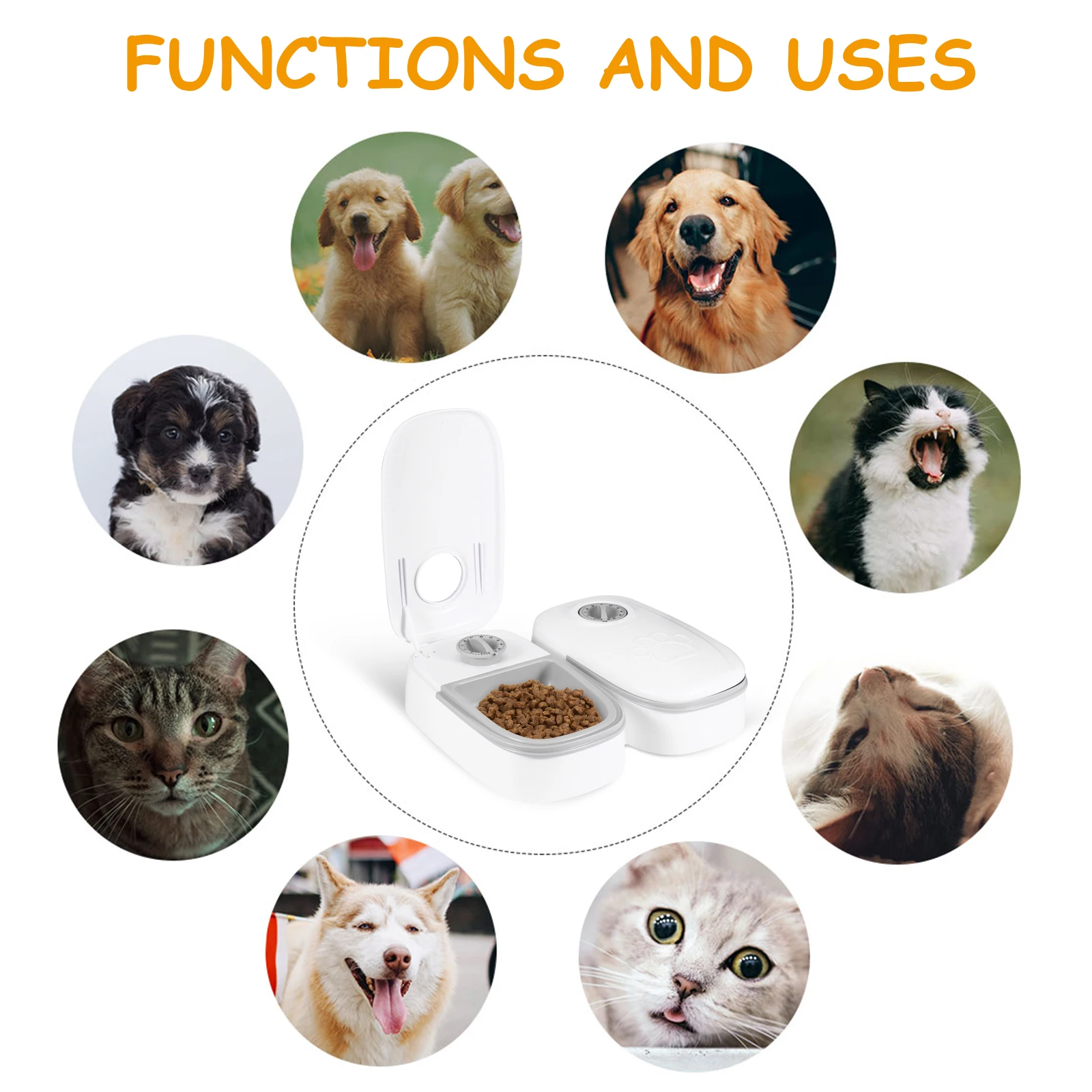 【Compact design】: Our Automatic 2 Meal Cat Feeder measures 27*24*7cm and is compact enough to fit anywhere in the home. Whether it's in the kitchen, living room or bedroom, it doesn't take up too much space.